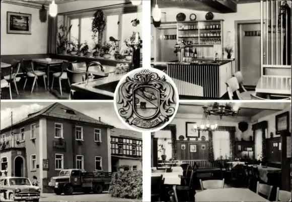 Wappen Ak Plothen in Thüringen, Gasthaus zum Plothenteich, Innenansichten