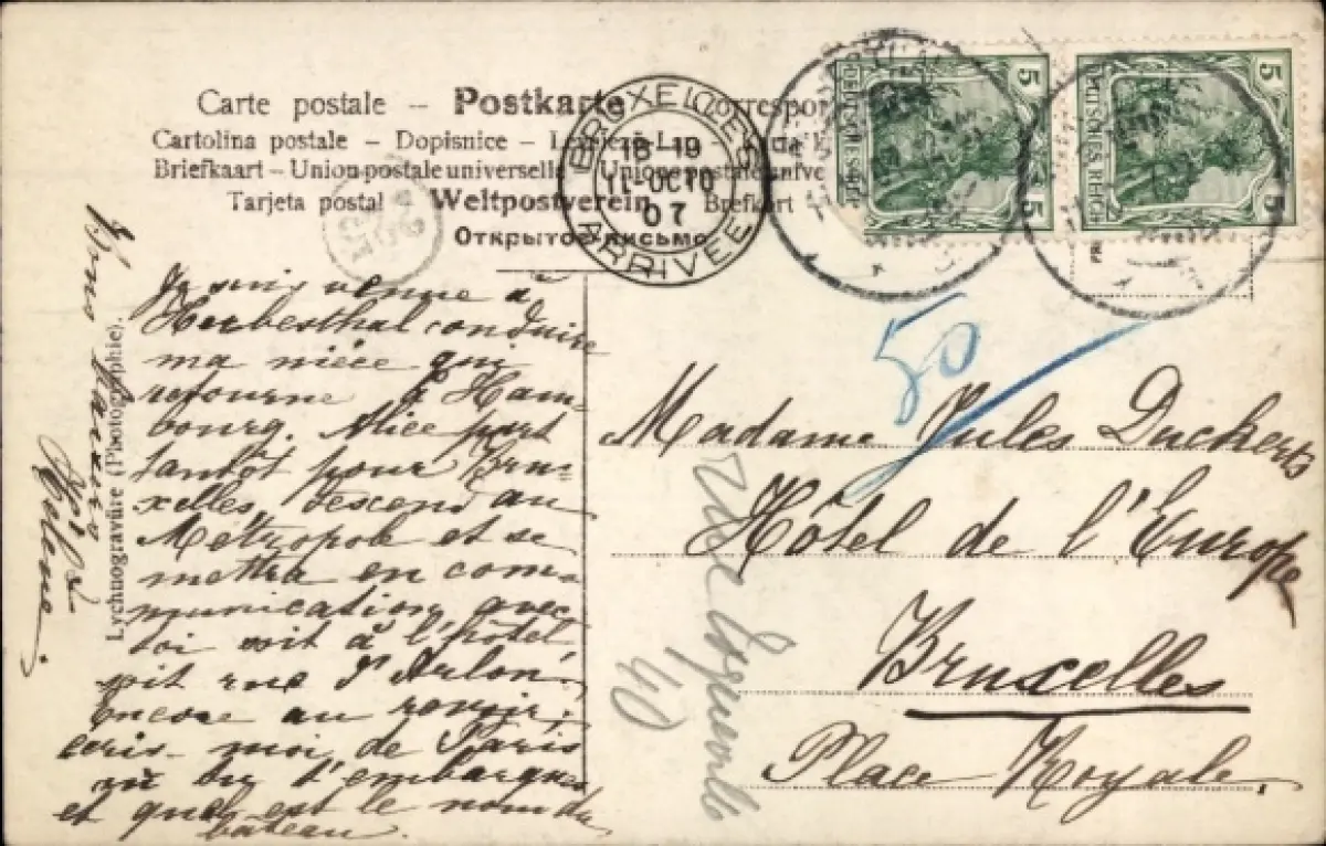 Zustand, siehe Scan, gelaufen, 1907 - ca 9 cm X 14 cm