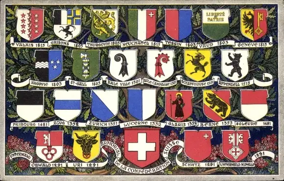 Wappen Ak Schweiz, Kantone, Bern, Solothurn, Uri, Obwald, Waadt, Genf