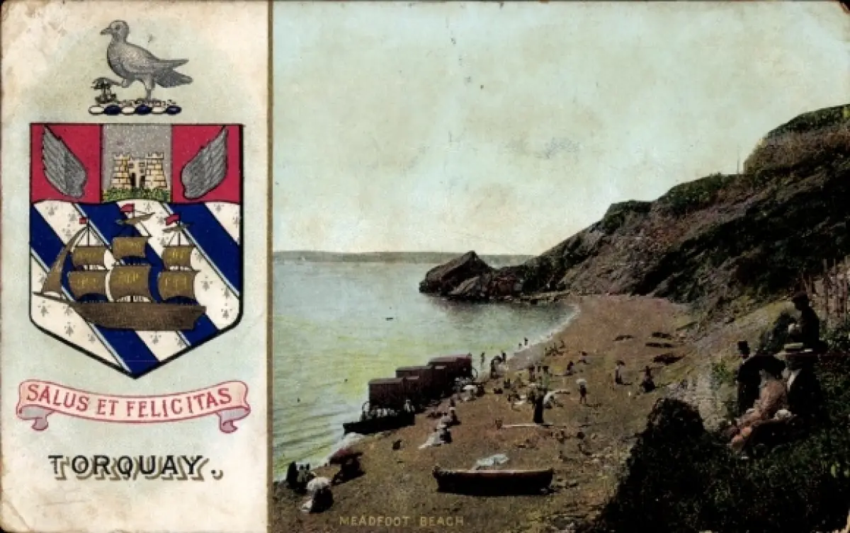 Wappen Ak Torquay Devon England, Meadfoot Beach