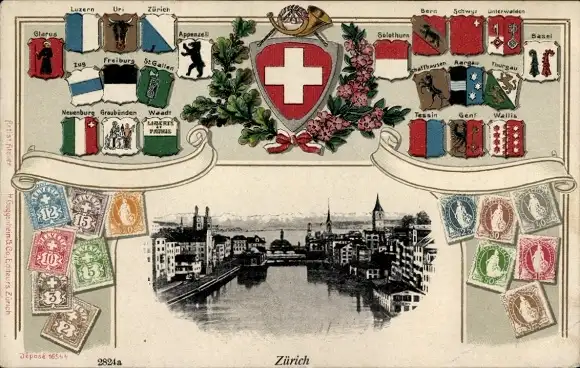 Wappen Ak Zürich Stadt Schweiz, Gesamtansicht