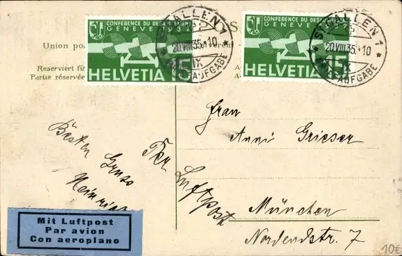 Zustand, siehe Scan, gelaufen, 1935 - ca 14 cm X 9 cm