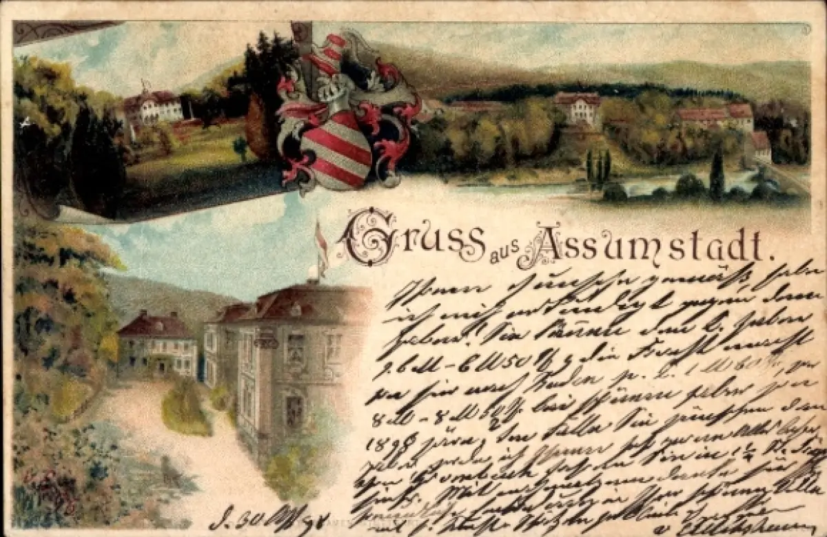 Wappen Künstler Ak Assamstadt in Tauberfranken, Straßenpartie, Herrenhaus