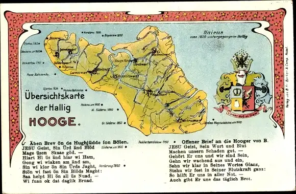 Wappen Landkarten Ak Hallig Hooge in Nordfriesland, Hansdwarf, Backenswarf