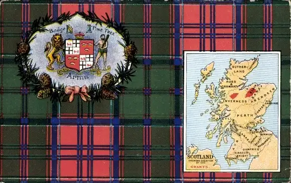 Wappen Landkarten Ak Schottland, Kiefernbaum, Abzeichen