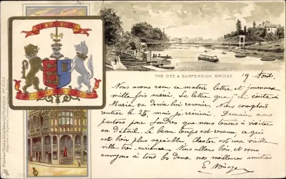 Wappen Litho Chester Cheshire England, The Dee, Suspension Bridge