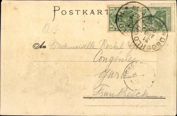 Zustand, siehe Scan, gelaufen, 1902 - ca 14 cm X 9 cm