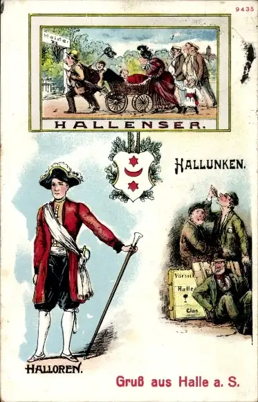 Wappen Litho Halle an der Saale, Hallenser, Halloren, Hallunken