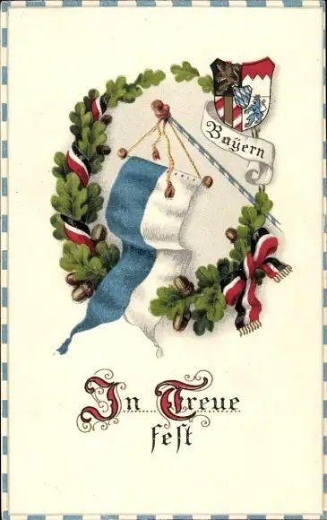 Wappen Litho In Treue fest, Bayern, Wappen, Fahne, Eichenlaub