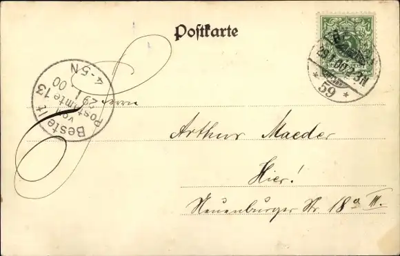 Zustand, siehe Scan, gelaufen, 1900 - ca 14 cm X 9 cm