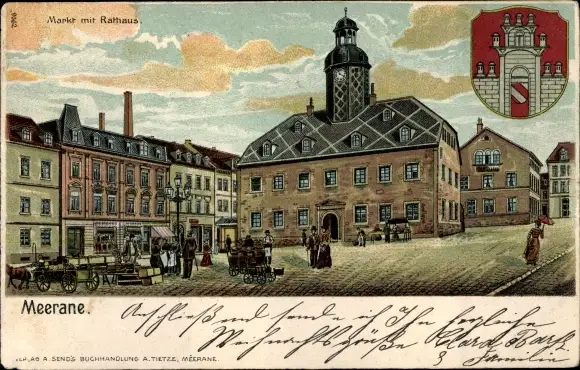 Wappen Litho Meerane in Sachsen, Markt, Rathaus