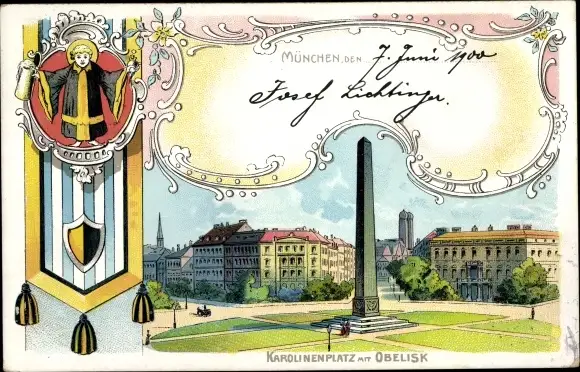 Wappen Litho München, Karolinenplatz, Obelisk, Münchner Kindl