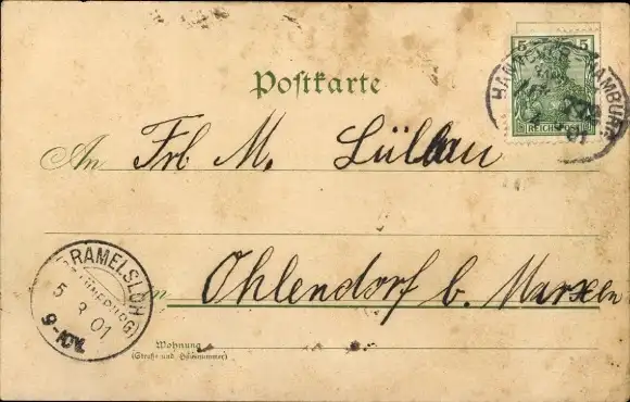 Zustand, siehe Scan, gelaufen, 1901 - ca 14 cm X 9 cm