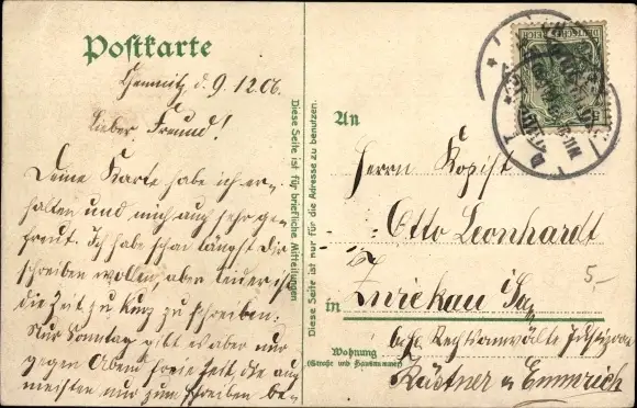 Zustand, siehe Scan, gelaufen, 1906 - ca 9 cm X 14 cm