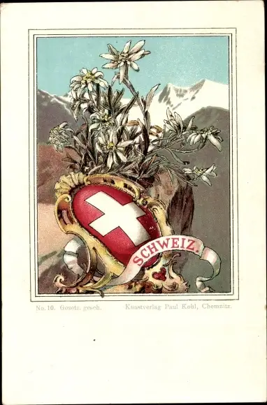 Wappen Litho Schweiz, Landeswappen, Edelweiß, Gebirge