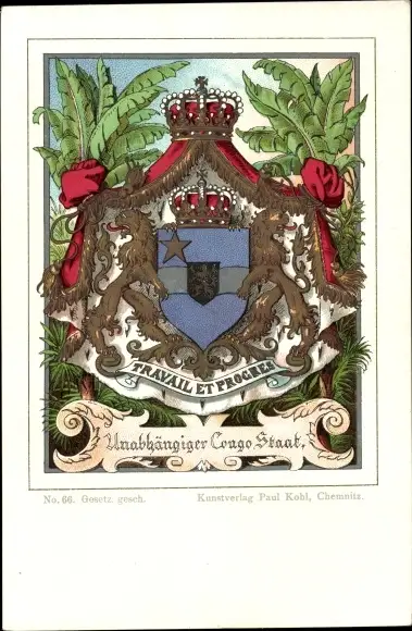 Wappen Litho Unabhängiger Congo Staat, Kongo, Zaire, Krone, Löwen