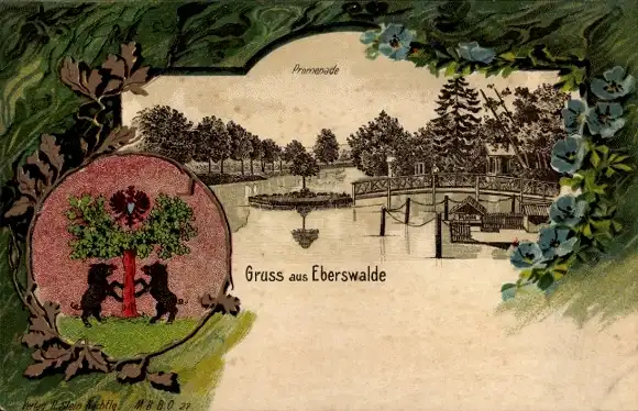 Wappen Passepartout Litho Eberswalde in der Mark, Promenade
