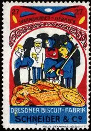 Kekse, Waffeln, Bild Nr. 27, Dresdner Biscuit - Fabrik Schneider & Co., Größe/Zustand: 5x4 , guter Zustand, Original alte Reklamemarke die seinerzeit für die Werbung benutzt wurde