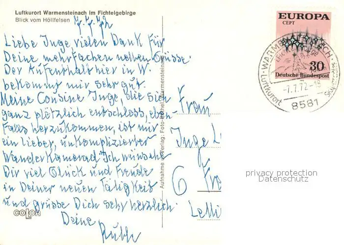 Warmensteinach Blick vom Hoellfelsen Warmensteinach postalisch gelaufen 1972 Erhaltung siehe scans [WerneD78] WernPID7