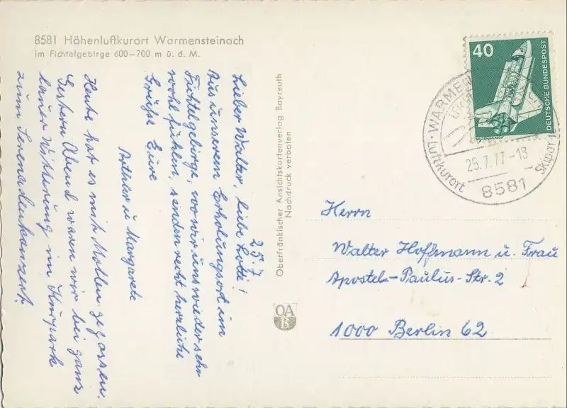 Postleitzahl:95485 (neu) / W 8581 (alt)