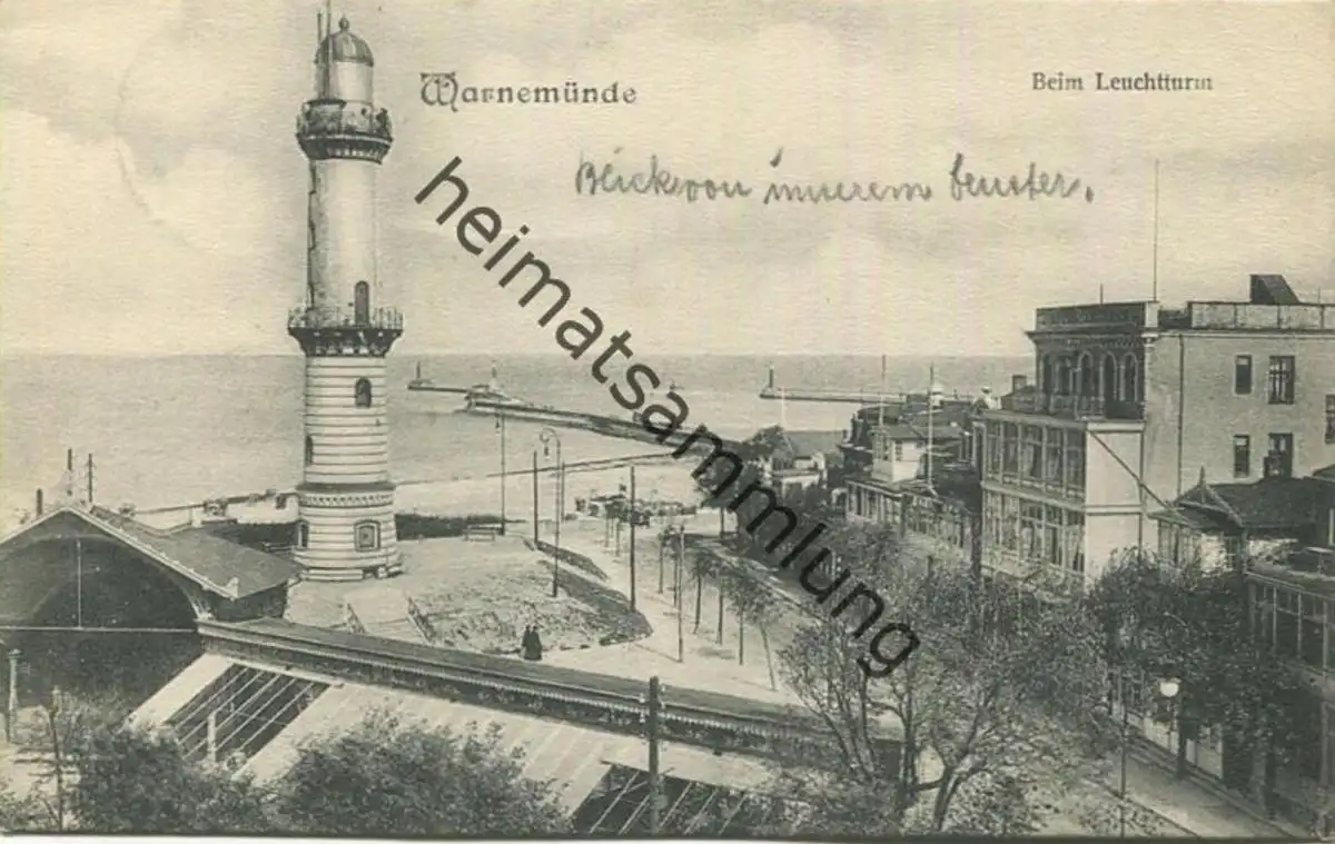 Warnemünde - Leuchtturm - Verlag Emil Krakow Warnemünde gel. 1909