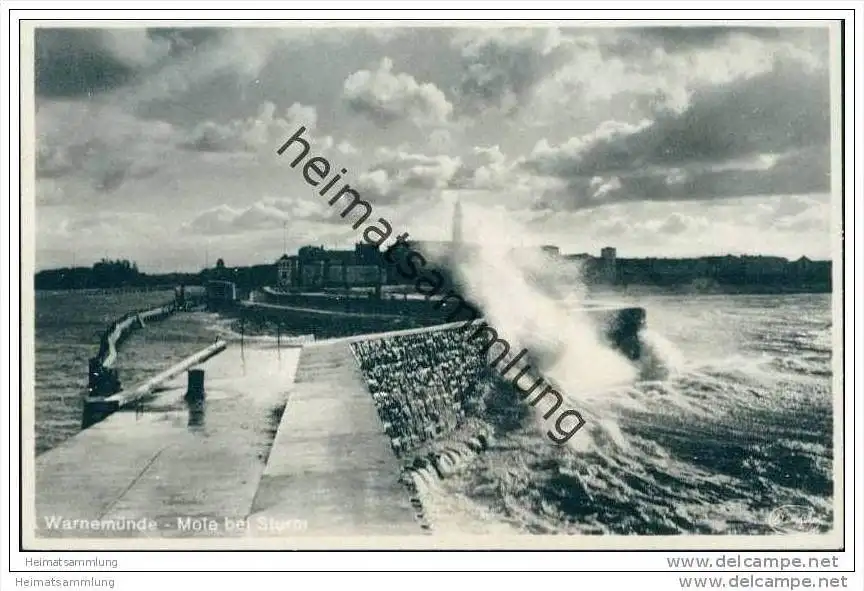Warnemünde - Mole bei Sturm - Verlag Stengel & Co. Dresden 40er Jahre (E2465)