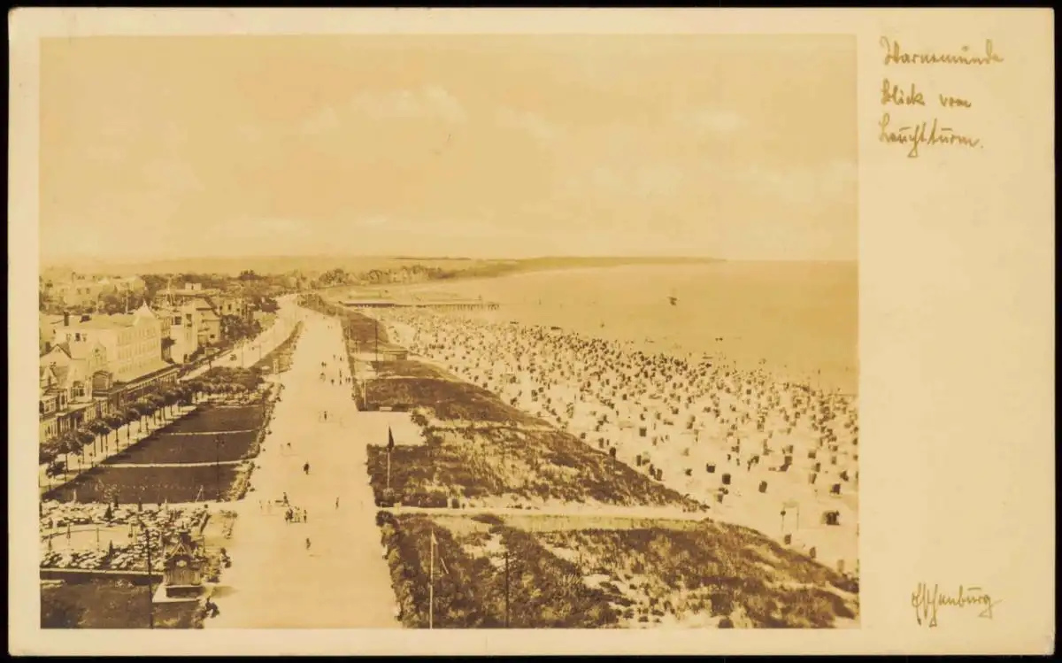 Warnemünde-Rostock Blick vom Leuchtturm auf die Strandpromenade 1934
