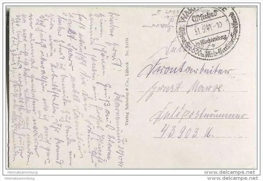 Warnemünde - Stoltera - Feldpost an Frontarbeiter - Verlag Schöning & Co. Lübeck (E37433) gel. 1941