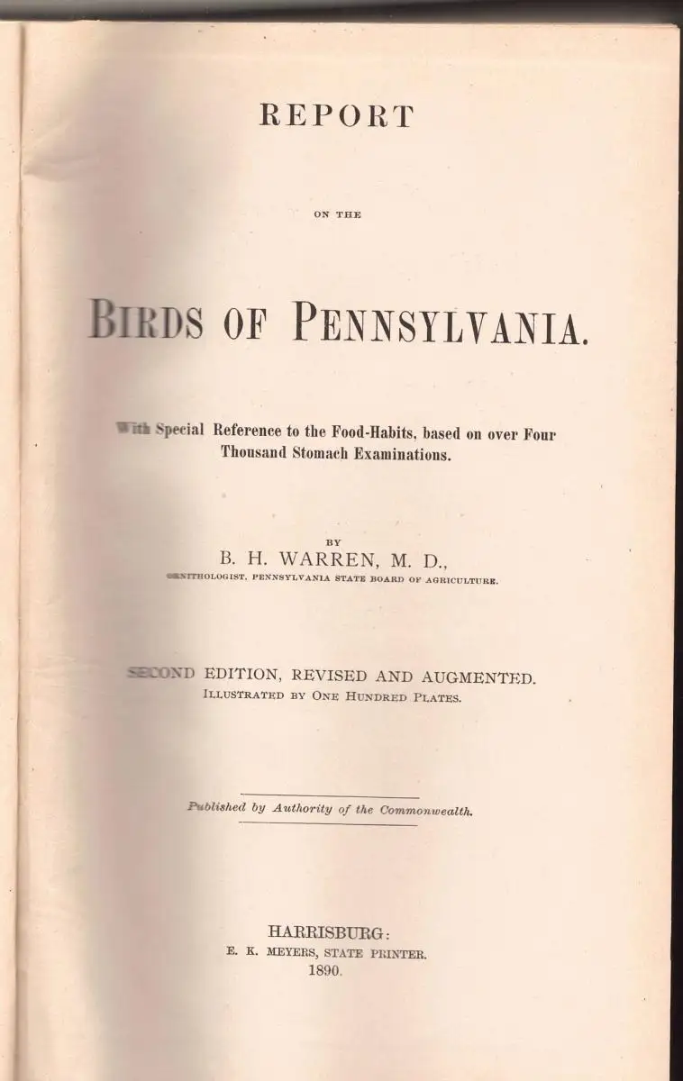 Warren, Benjamin Harry: Report on the birds of Pennsylvania : with special reference to the food-habits, based on over four thousand stomach examinations. 2. ed., rev. and augm.