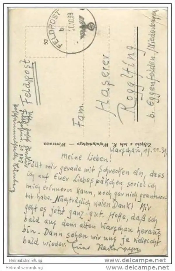 Warschau - Warszawa - Grob Nieznanego Zolnierza - Feldpost - Ecken teilweise bestossen (G23634) gel. 1939