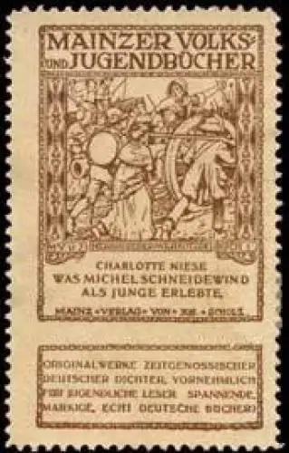Charlotte Niese, Herausgeber: Wilhelm Kotzde, Reihe: Mainzer Volks- und Jugendbücher, Größe/Zustand: 6x3 , guter Zustand, Original alte Reklamemarke die seinerzeit für die Werbung benutzt wurde