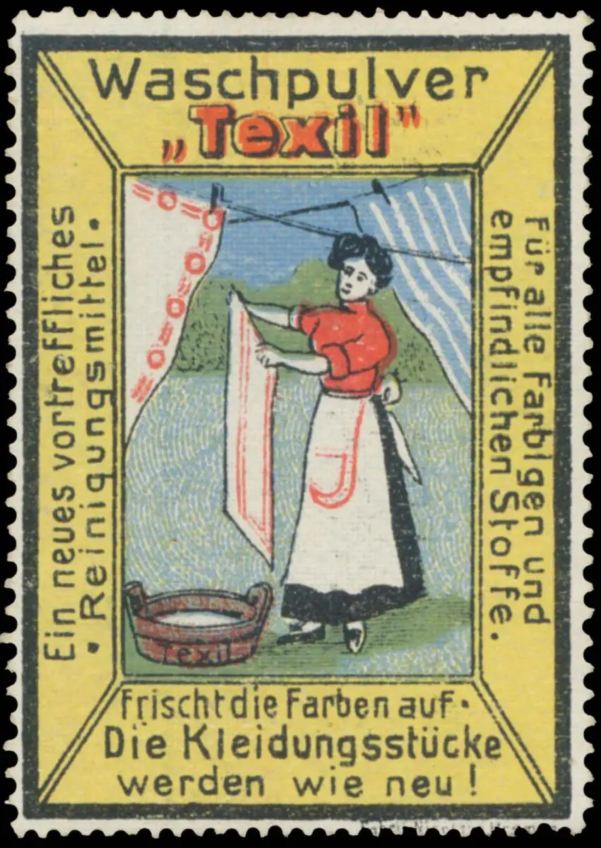 Frischt die Farben auf. Die Kleidungsstücke werden wie neu! Druck: C. Nicolaus, Bremen, Größe/Zustand: 5x4 , guter Zustand, Original alte Reklamemarke die seinerzeit für die Werbung benutzt wurde