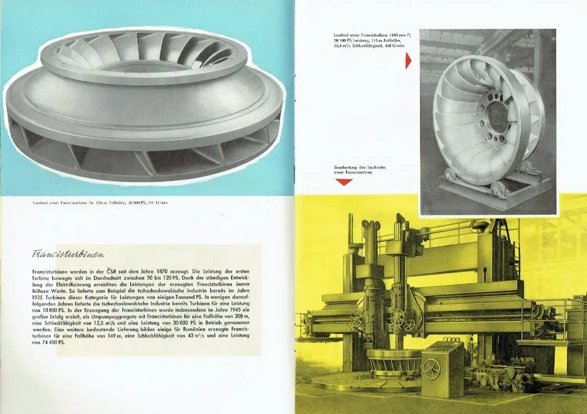 sehr guter Zustand, geringe Gebrauchs- und Alterungsspuren: untere Ecken teils leicht eselsohrig, Prospekt der tschechischen Industrie in deutscher Sprache - Alte Tradition und moderne Konstruktion - Forschung, technische Beratung und Projektierung - Einrichtungen für Wasserkraftwerke - Wasserturbinen - Kaplanturbinen - Francisturbinen - Peltonturbinen - Automatische Drehzahlregler für Wasserturbinen - Maschineneinrichtungen und Zubehör für Wasserbauwerke - Hydrogeneratoren - Generatoren vertikaler Bauart - Generatoren horizontaler Bauart - Transformatoren - Schaltwarten, Softcover, ca. 21 x 29,5, 40 Seiten mit 50 Bildern