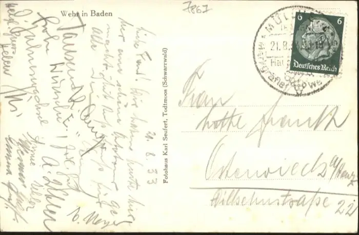 Wehr Baden Wehr Baden x Wehr postalisch gelaufen 1933 Alte Ansichtskarte Postkarte