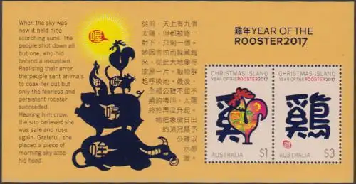 Weihnachts-Insel MiNr. Block 45 Chin.Neujahr, Jahr des Hahnes
