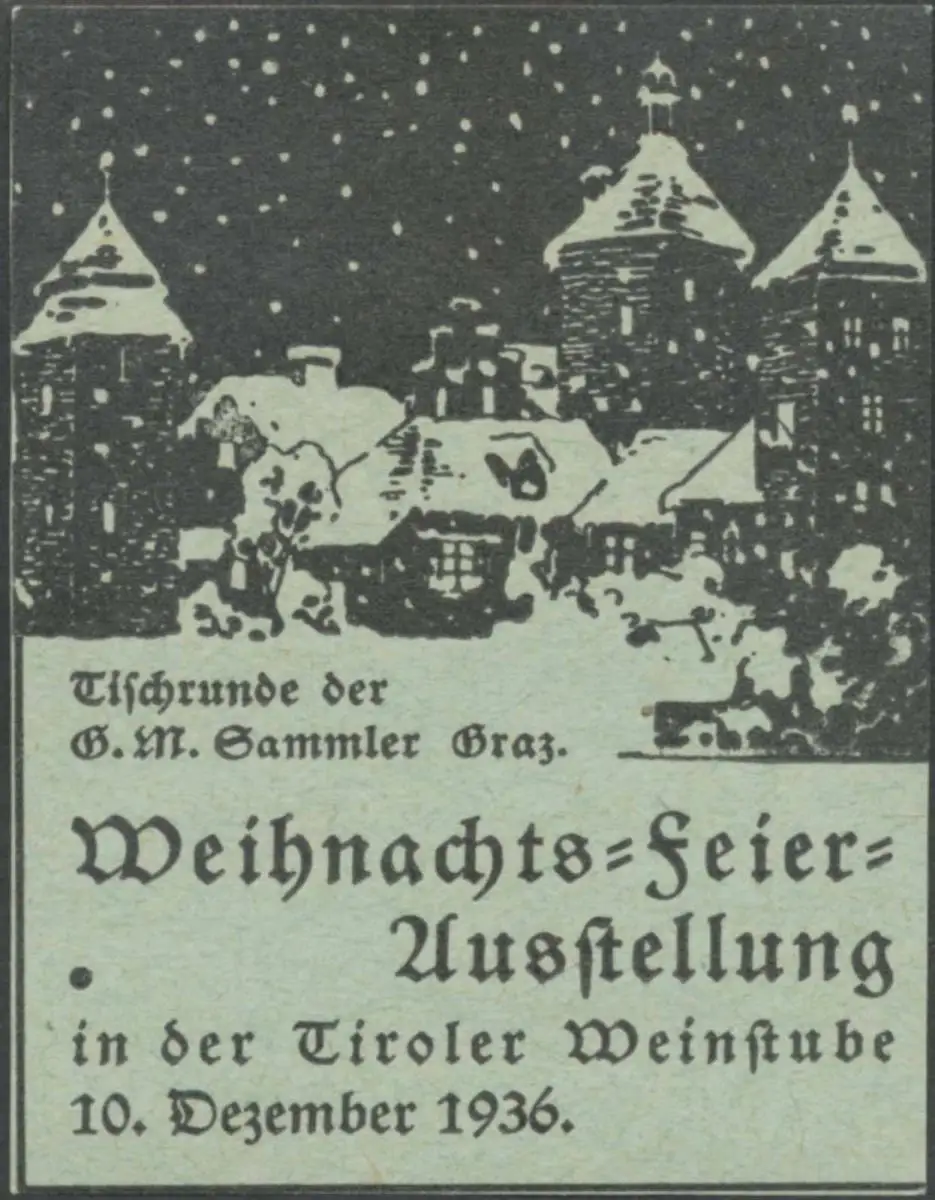 in der Tiroler Weinstube, Tischrunde der B.M. Sammler Graz, Weihnachten, grau, Variante 5, Größe/Zustand: 6x5 , guter Zustand, Original alte Reklamemarke die seinerzeit für die Werbung benutzt wurde