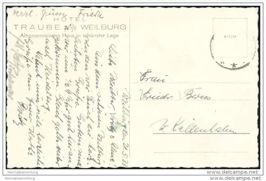 Weilburg - Schloss - Briefmarke entfernt (E4889) gel. 1933