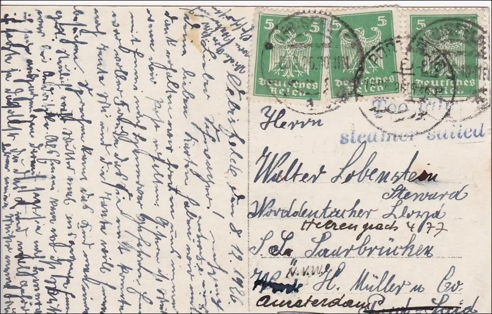 Weimar: Ansichtskarte über Saarbrücken nach Amsterdam 1926