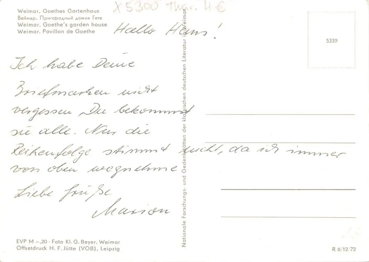Weimar - Goethes Gartenhaus ngl 158.439