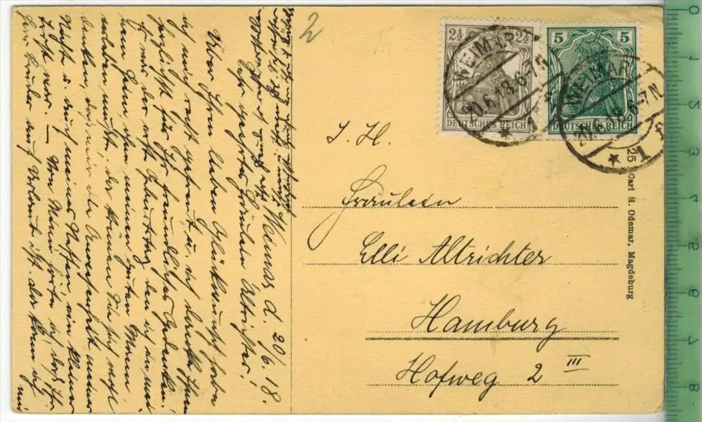 Weimar, Shakespeare-Denkmal – 1918, - Verlag. Carl H. Odemar, Magdeburg, POSTKARTE mit Frankatur, mit Stempel, gelaufen!! 20.6.18 Erhaltung: I-II, Karte wird in Klarsichthülle verschickt. (H))