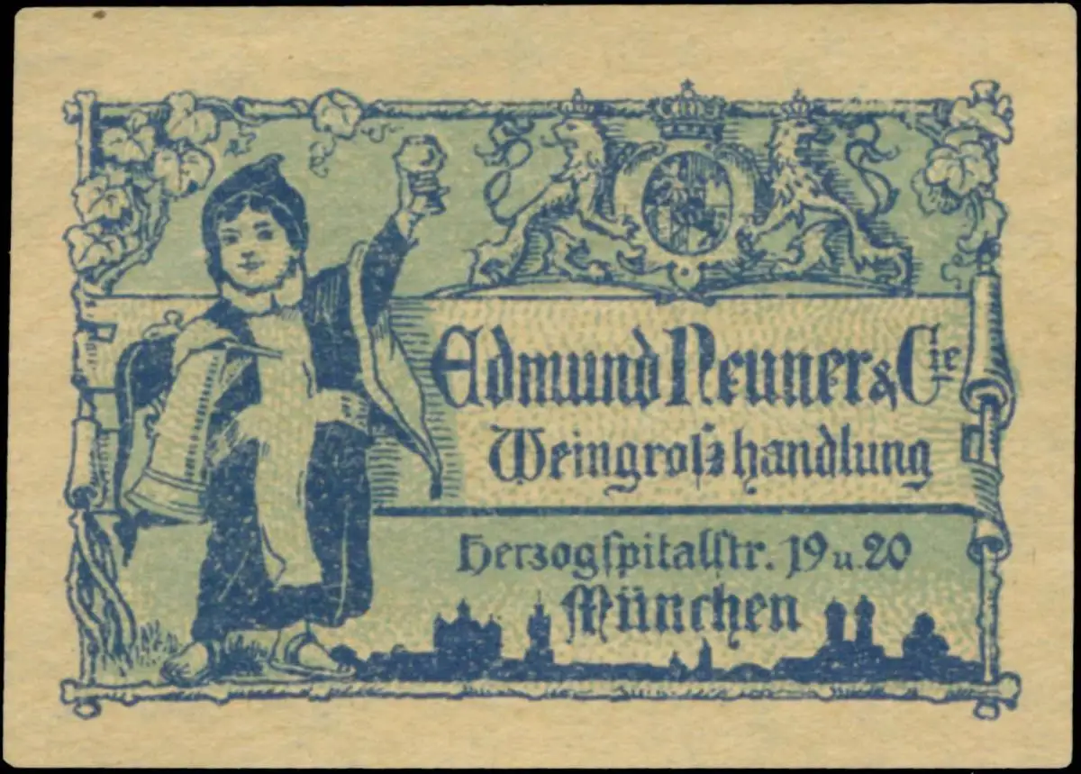 Wein, Münchner Kindl, Herzogspitalstraße 19,20, Größe/Zustand: 4x5 , guter Zustand, Original alte Reklamemarke die seinerzeit für die Werbung benutzt wurde