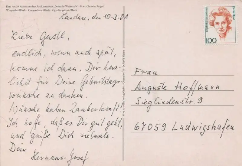 Ich hatte die Rechnung sofort als Vorkasse bezahlt, aber keine Zusendung der Karte erhalten. Trotz Nachfrage keine Rückmeldung bzw. Erklärung. Da es sich zum Glück nur um 1,70 € handelt, ist die Sache für mich erledigt, ärgerlich, aber zu verkraften. Mit den drei anderen Karten, die ich bestellt hatte, hat alles wunderbar geklappt.