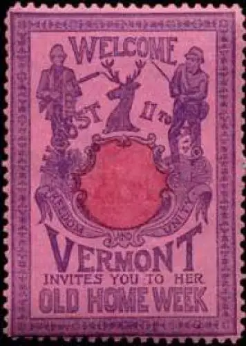 Invites you to her old home week, Jagd, Größe/Zustand: 5x3 , guter Zustand, Original alte Reklamemarke die seinerzeit für die Werbung benutzt wurde