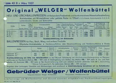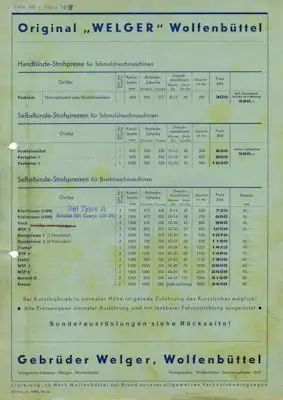 Welger 2 Preislisten 1937