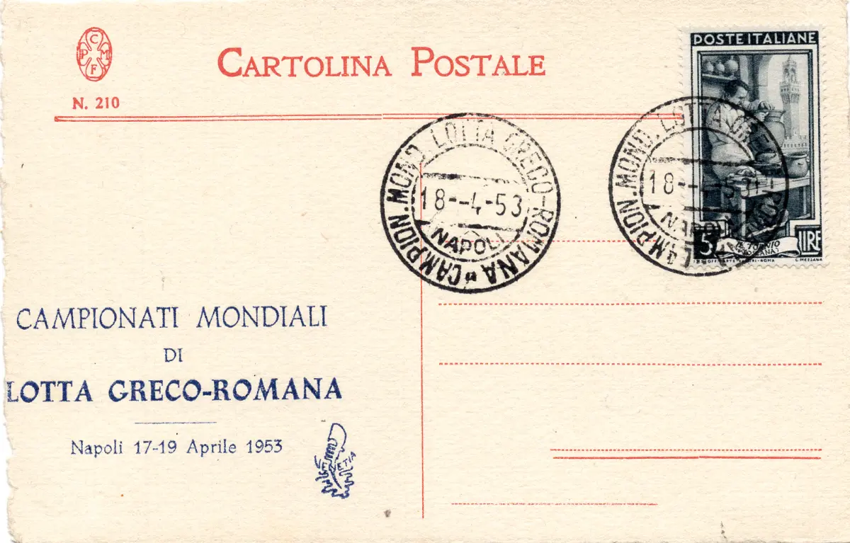 C - Weltmeisterschaften Griechischer Römischer Kampf - Postkarte vom Venetia Club für die Veranstaltung vorbereitet - Ann. Gedenkstätte Neapel 18.4.53 - Ungewöhnlich für Spezialisten Cod.537/182