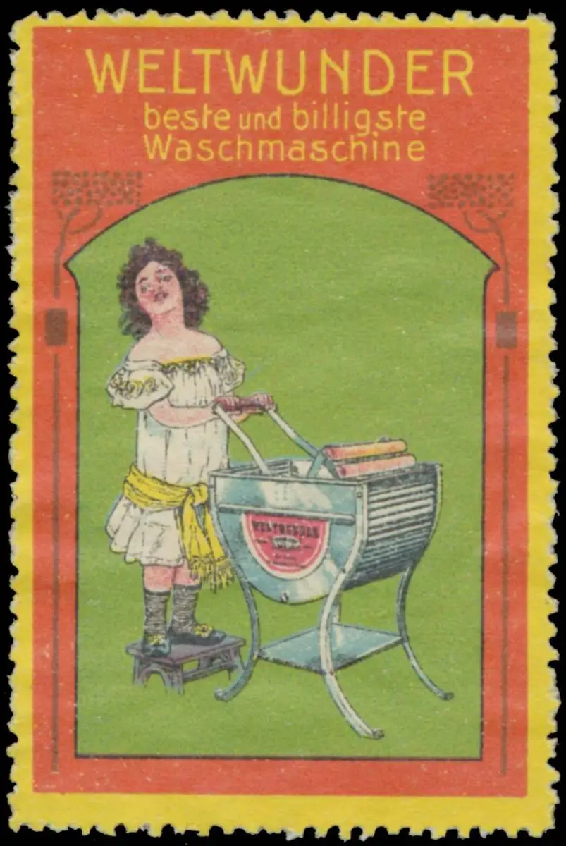 beste und billigste Waschmaschine, Größe/Zustand: 6x4 , beschädigt, Original alte Reklamemarke die seinerzeit für die Werbung benutzt wurde