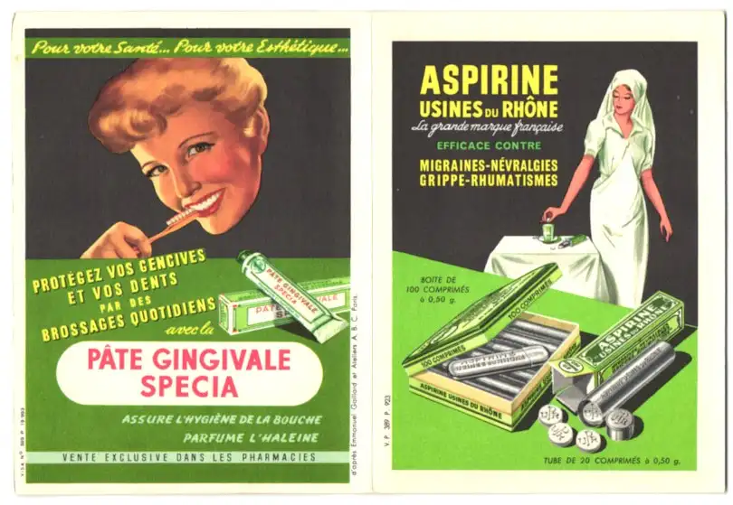 Werbebillet Aspirin-Tabletten, Pâte Gingivale Specia-Zahnpasta