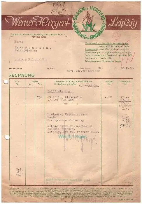 Werner Hergert in Leipzig , 1949 , Samen - Handlung !!!