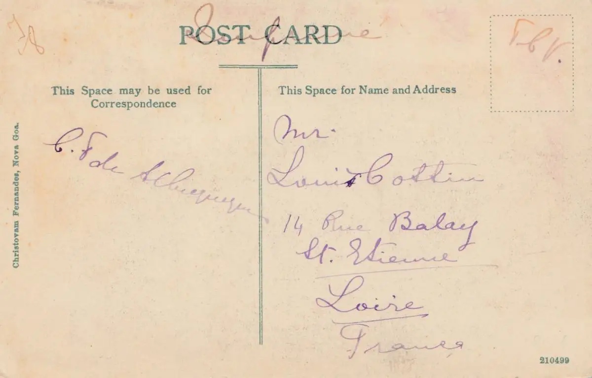 West India: post card Goa - Pillory - to St. Etienne/Loire/France