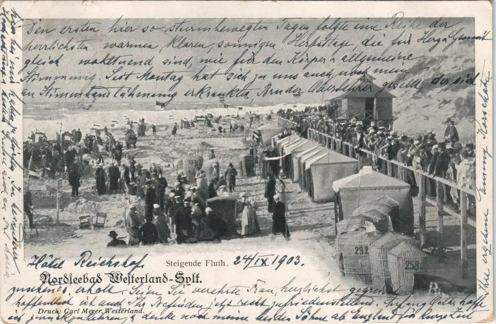 Westerland-Gemeinde Sylt Zelte Strand belebt, steigende Flut 1903